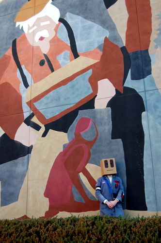 From East Broad Street Slobot spied a magnificent mural. The mural is the result of a competition held in 1979. The winner of that contest was artist David Benson, a graduate of the school that the mural graces. |