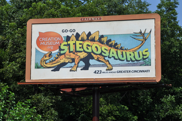 The star of this sign was the mighty Stegosaurus! The sign advertised the Creation Museum in Petersburg, Kentucky.